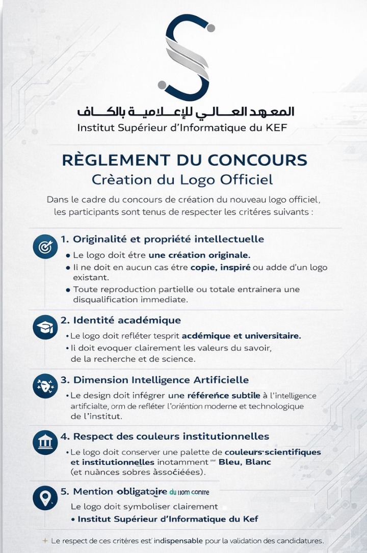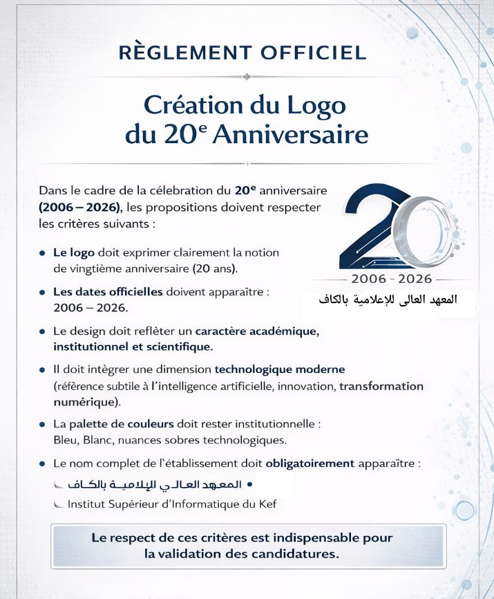 | Nom | NewLogo@ISIKEF 2026 : Concours officiel de création de Logo officiel de l'ISIKEF - 20ème anniversaire |